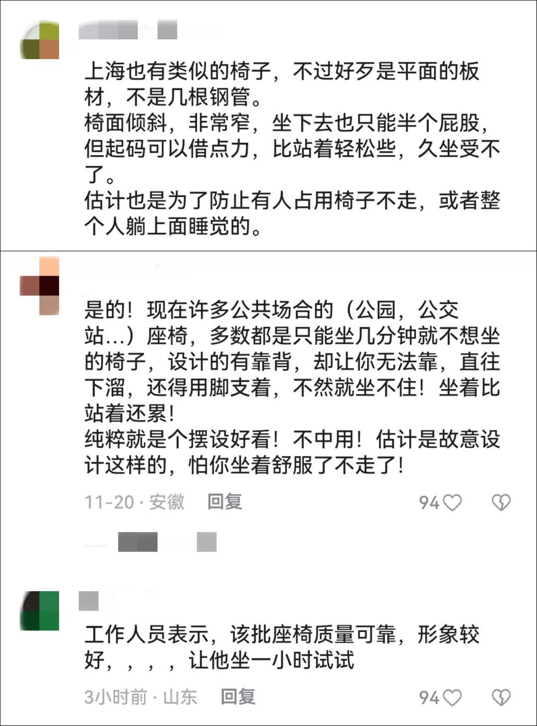 还有网友说,其他城市的公共场合也有类似的椅子……